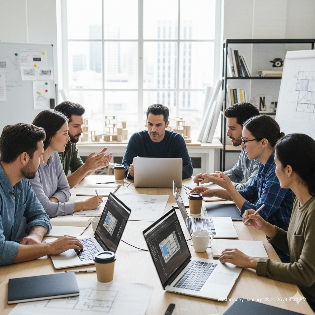 O diferencial ArqLABE: Ensino síncrono (ao vivo) onde discutimos a lógica da informação. Você aprende a extrair quantitativos reais enquanto modela.